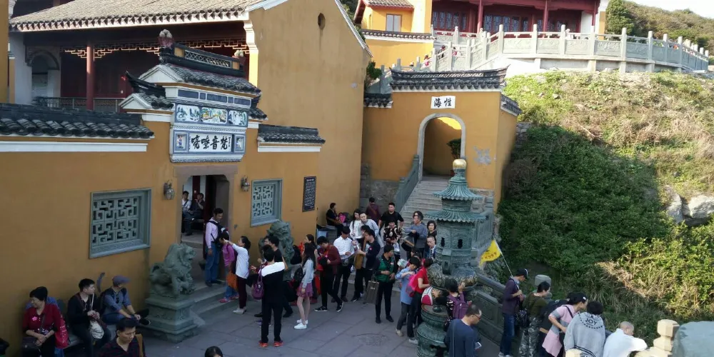 不少遊客會選擇在遊山拜佛過後來到這裡,赤腳走在沙灘上,吹著海風聽潮聲,在沙灘上漫步,一天的疲憊都煙消雲散了。在沙灘北端有一根巨石,潮落時石頭露出水面,上面刻著「聽潮」二字。此處往上有石階通往望海亭,登亭遠眺,一望無際的大海,視野非常開闊。此外,在舟山市普陀山風景區-千步大沙也可以遠眺海上臥佛洛迦山。