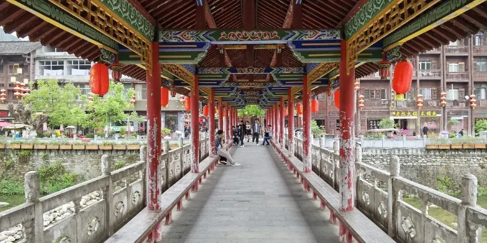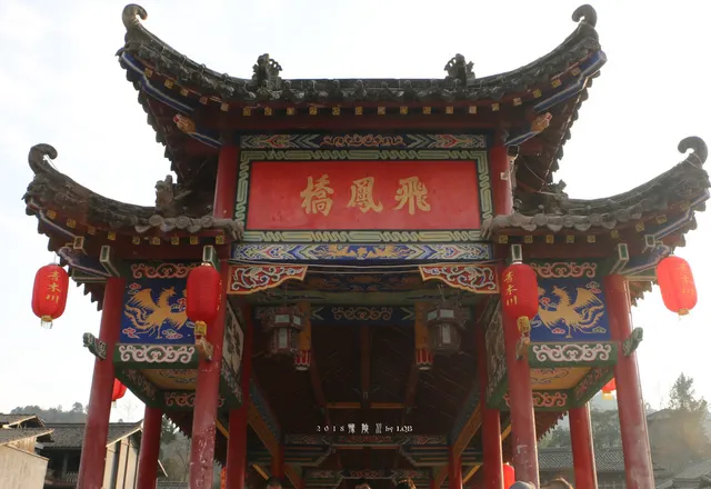 飛鳳橋位於陝西省寧強縣青木川古鎮金溪河上,處於陝、甘、川三省交界,有“一腳踏三省”之譽。