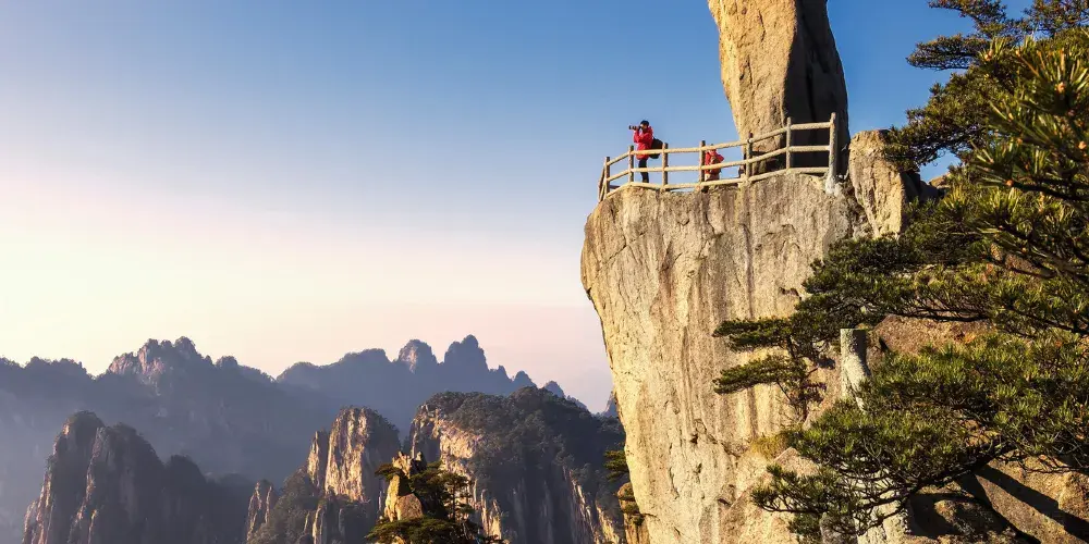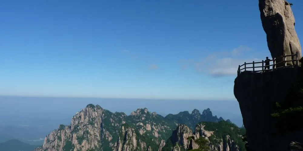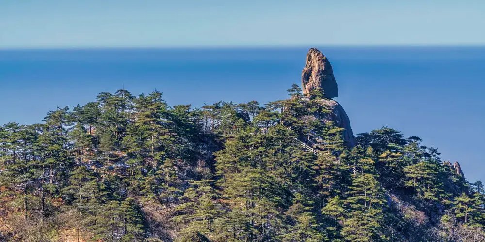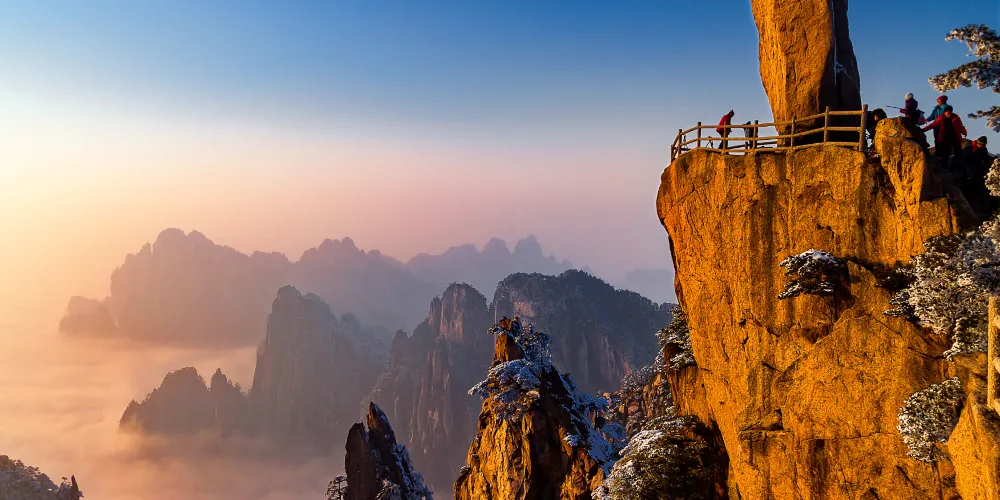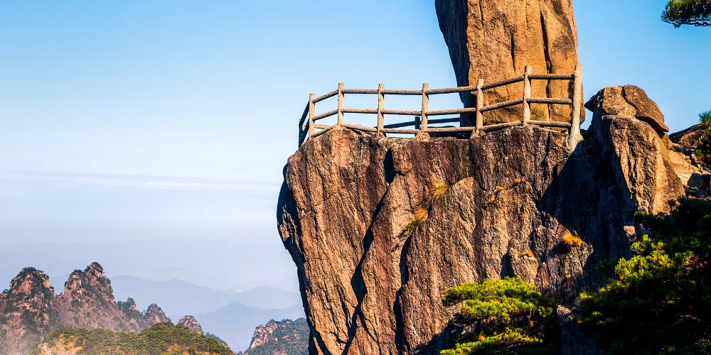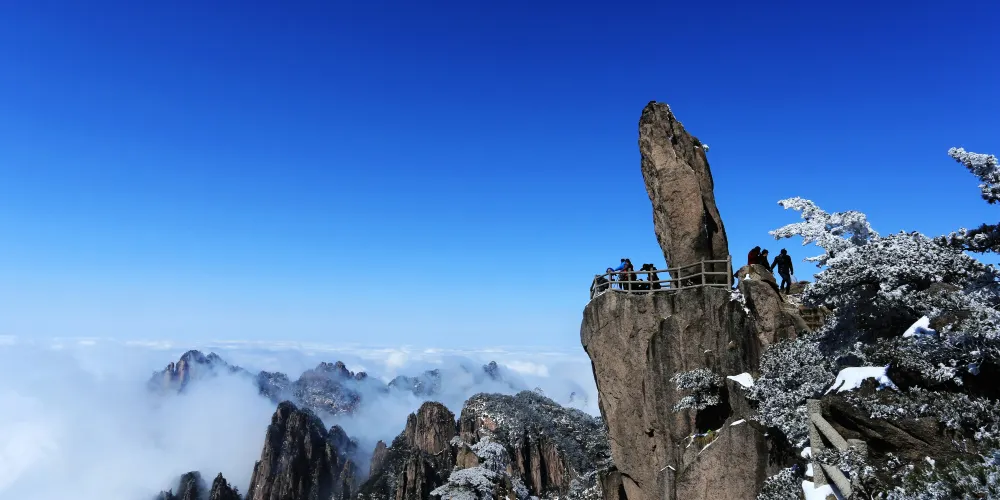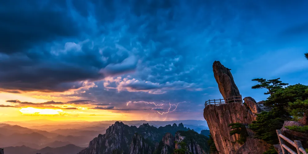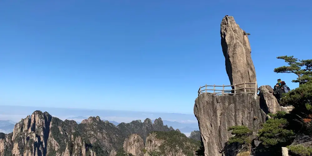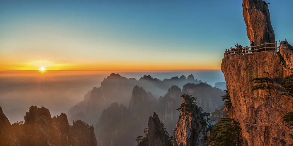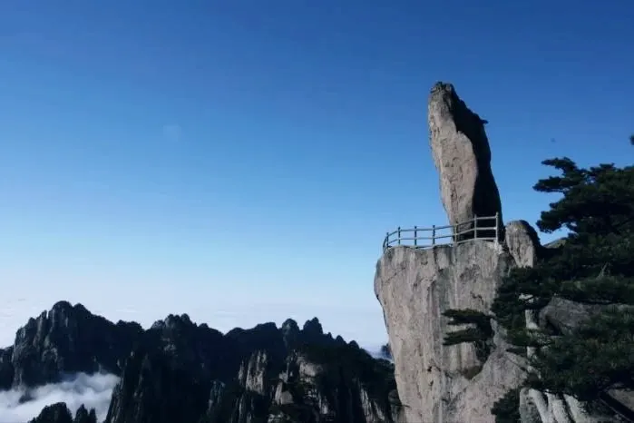 光明頂是黃山的較高峰,海拔1860米,因高曠開闊,日光照射長而得名。登上光明頂觀景特別棒,這裡不僅是俯看四周壯麗群峰的好地點之一,也是看日出、日落、雲海的好地方。