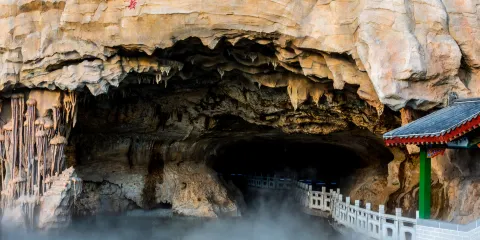 位於遼寧省鳳城市賽馬鎮温洞村,屬喀斯特地貌巖溶洞穴景觀,景區由魁偉洞穴、澄碧鏡湖、雲中玻璃棧道等奇景組成;洞穴含水洞(水月洞天世界)和旱洞(青雲紫薇仙宮)構成。景區以洞為主體,融山、水、洞、泉、湖於一體,洞中有山水雲間,魁偉的溶洞景觀、水陸相伴的洞穴奇景。洞內深邃崎嶇逶迤,現開發可乘船遊覽地下暗河千餘米。開發溶洞遊覽步道2000米,洞天世界,大自然的鬼斧神工,使鍾乳奇石變幻萬端,燈光照耀,散發出朦朧迷離的色彩,使洞內顯得神祕,富有詩意。