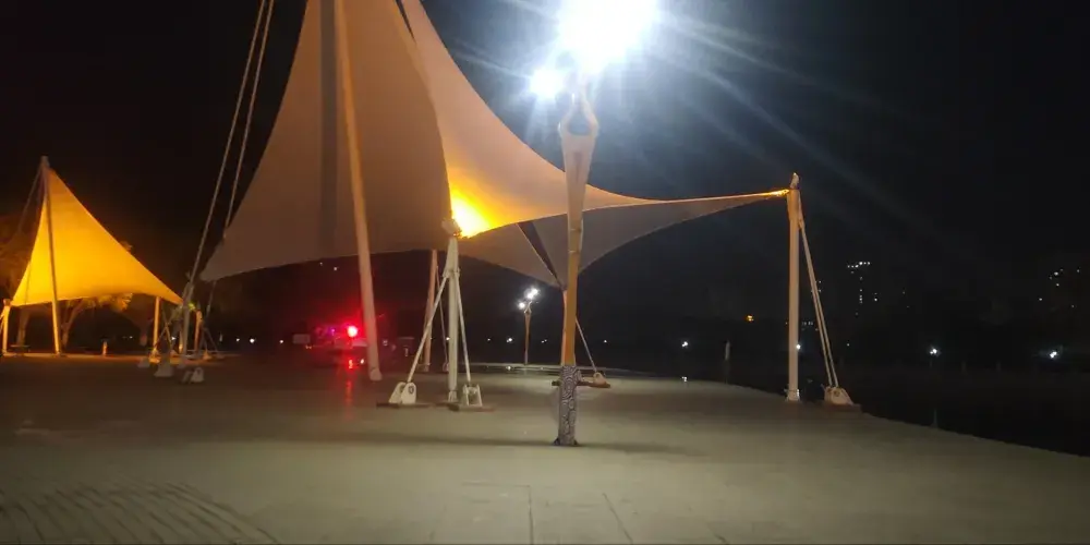 風帆廣場位於新疆巴音郭勒州庫爾勒市,廣場依河而建,場地開闊,景色優美。廣場上有很多風帆形狀的建築物,巍峨壯觀。是您休閑健身的好地方。