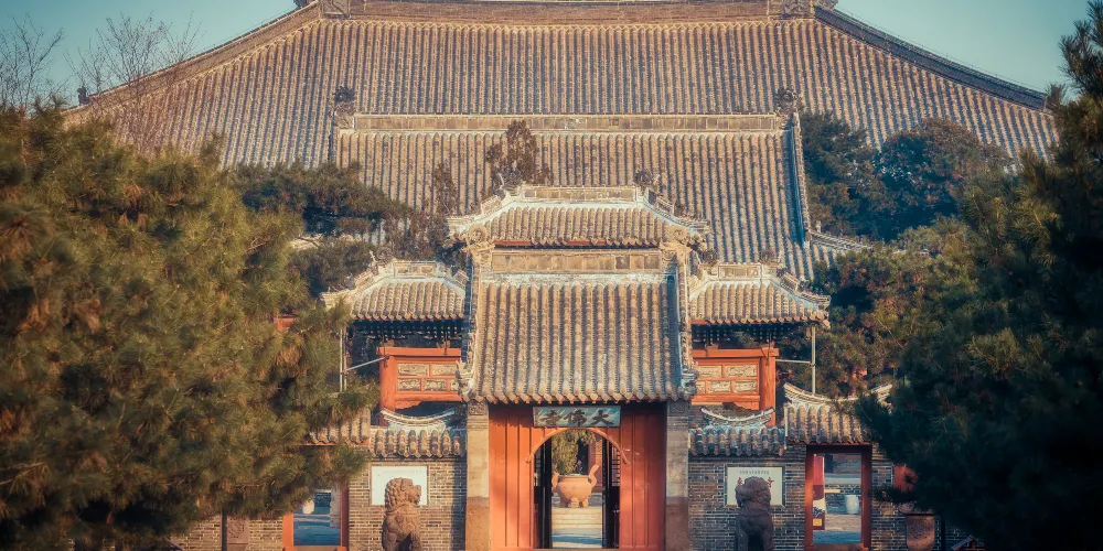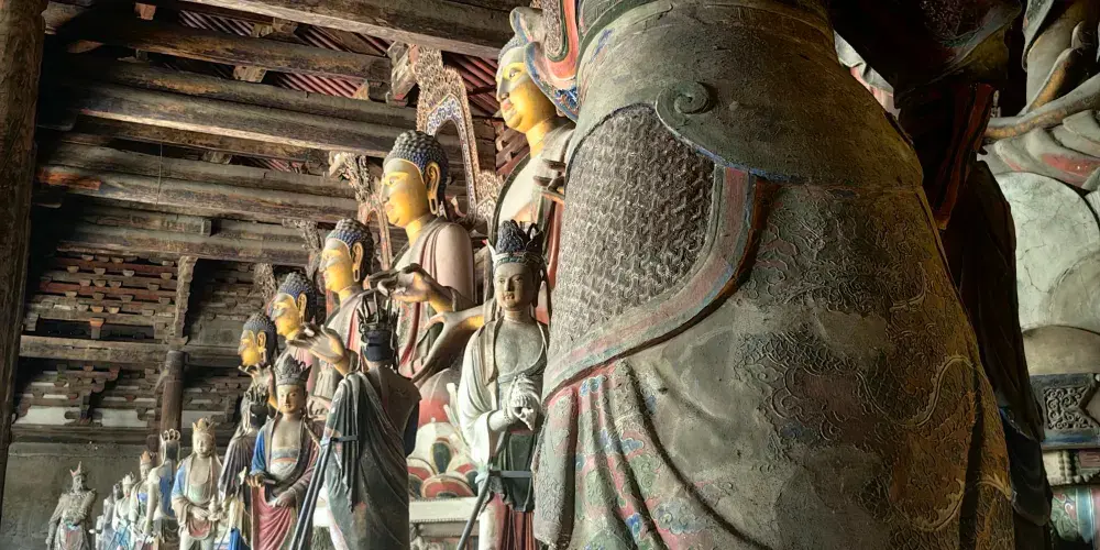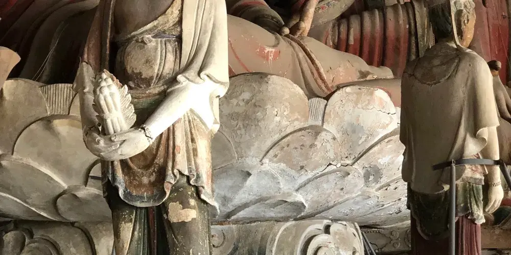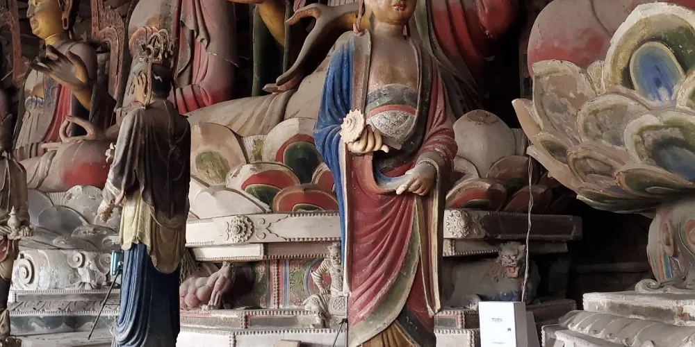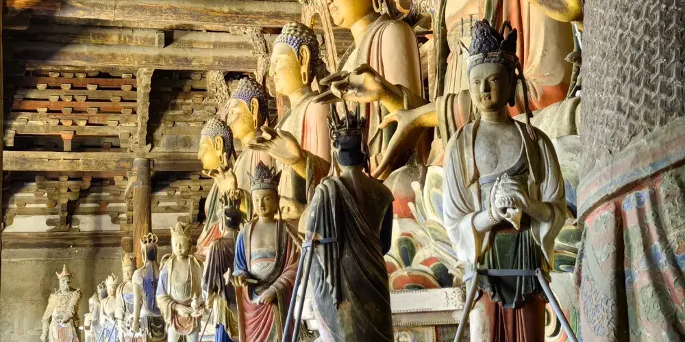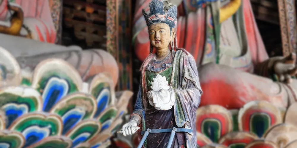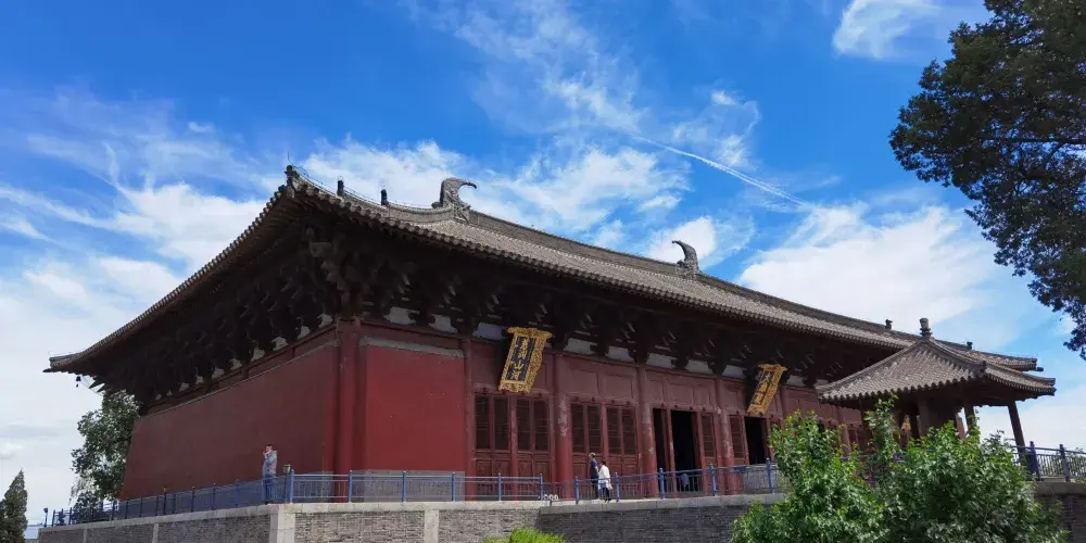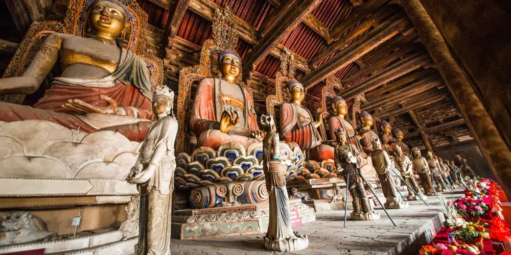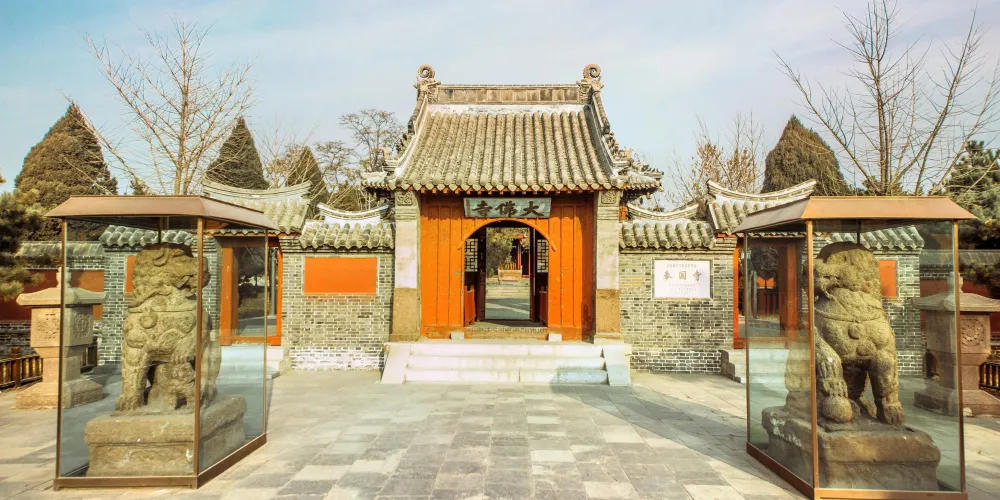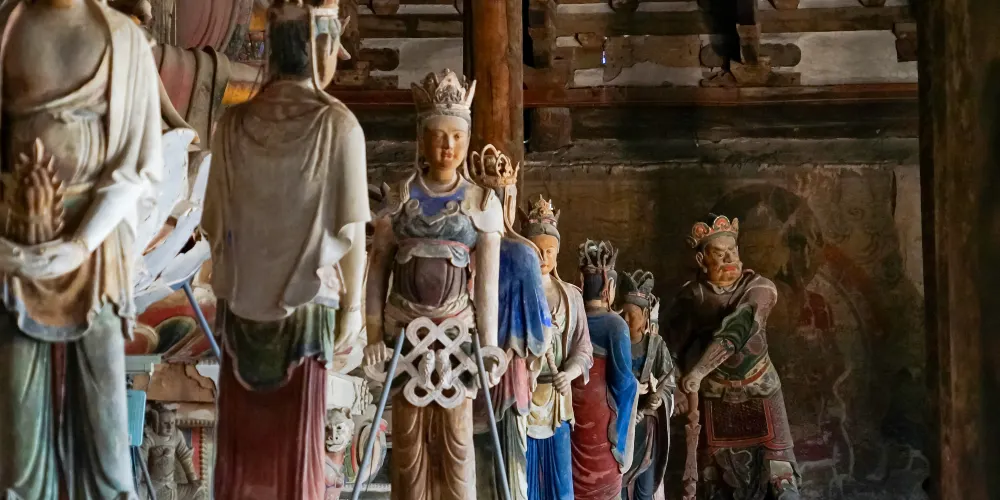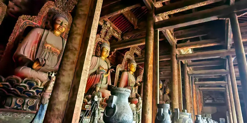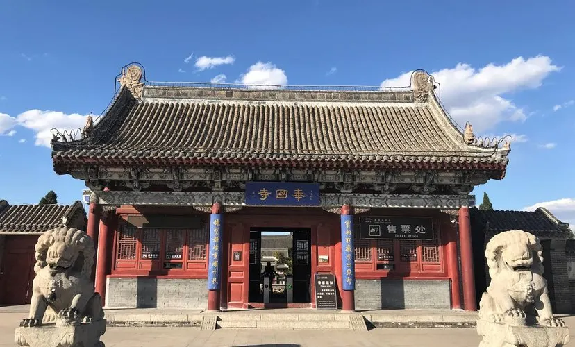 奉國寺是國內現存遼代三大寺院之一,其標誌性古建築-大雄殿是古代遺存較大的佛殿,殿內有世界上較為古老且比較大的泥塑彩色佛像群。殿內主供的七尊大佛為遼代所塑,有迦葉佛、拘留孫佛、屍棄佛、毘婆屍佛等,皆端坐於須彌座上。