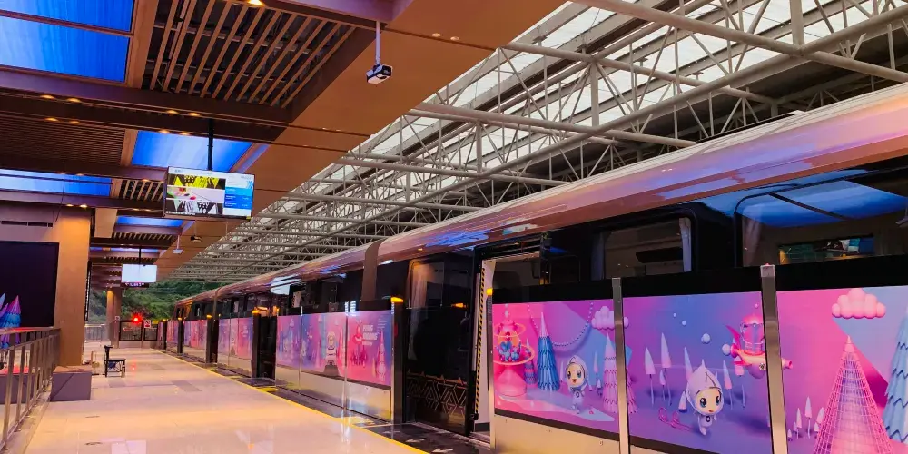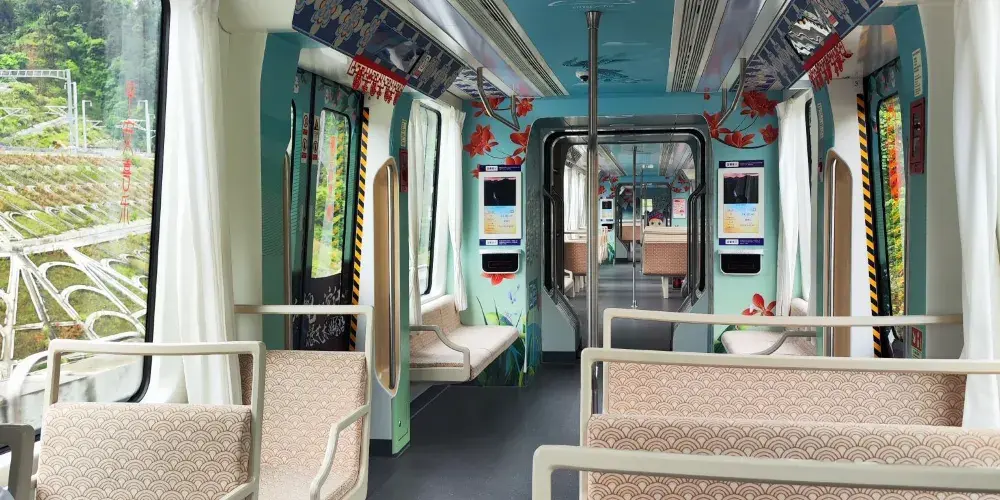 沿途分別設鳳凰古城(磁浮)站、鳳凰迎賓站、鳳凰攬勝站、鳳凰等待站4個車站,每個站點融入了鳳凰、湘西民俗元素,各具民族特色,用科技讓遊客沉浸式感受到煙雨鳳凰的春夏秋冬之美、神祕精彩的湘西民俗文化、人文風采。
