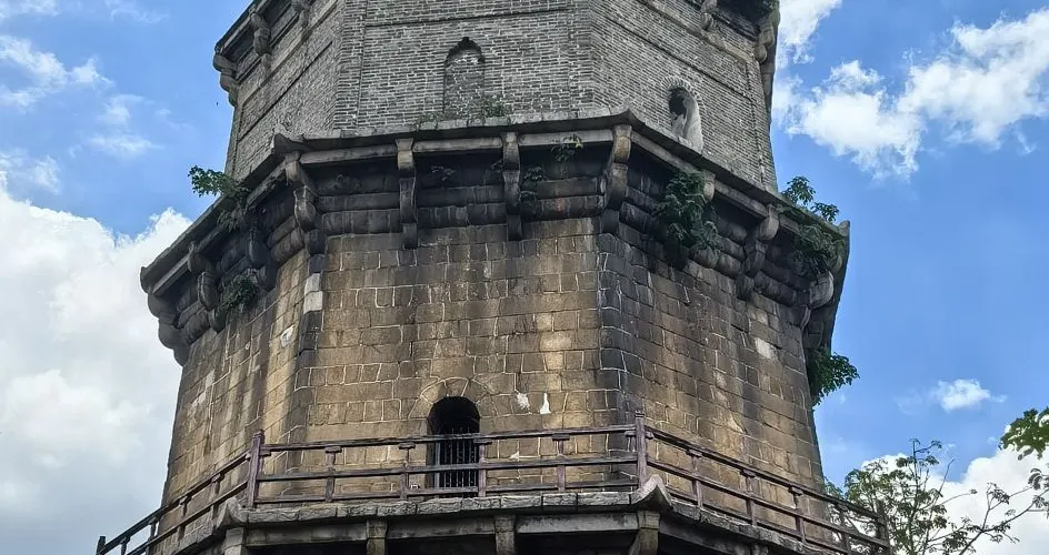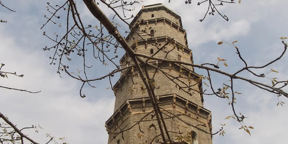 鳳凰塔得名於其面對鳳凰山、毗鄰鳳凰台,始建於明萬曆年間,後又重修。塔高四十餘米,塔身堅固,雄偉壯觀。塔身雕刻着龍、鳳、鶴、馬、羊等各種祥禽瑞獸,工藝精美。