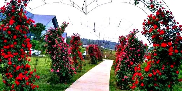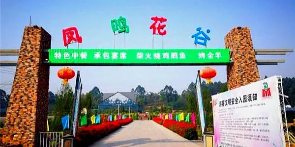 鳳鳴花谷位於四川省眉山市彭山區,佔地遼闊,喜慶氣氛濃厚。這裏的展廳展出的是各個種類的鮮花和奇形怪狀的小物件。這裏樹木葱鬱,繁花盛開,美不勝收。