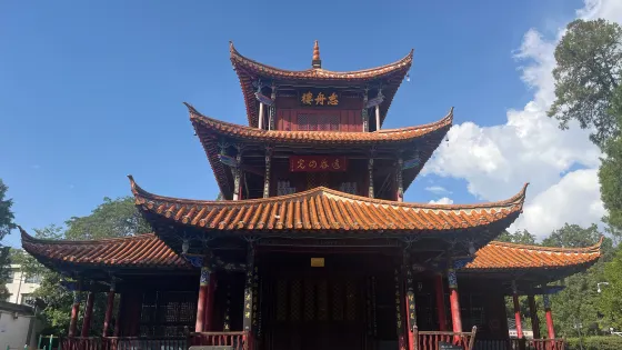 志舟樓位於城北,清康熙年間,澄江知府張聖治曾在此建萬壽宮,起蓋閣亭,栽花植木,後幾次修整,有了一定的規模,由於歷史的更迭,萬壽宮時盛時衰,到清末漸廢,直至殘破毀滅。人們對此地絢麗多姿的景色戀戀不捨,清新的空氣逗人喜愛,還是遊人不斷,引人入勝。1943年,當時任澄江縣長的劉承功又看中此地,便向各村攤派民夫,用兩年時間,在萬壽宮原址上建蓋了一個三層樓的樓閣。樓閣建成後,時值抗日戰爭勝利,縣府召集城鎮和四周鄉村的民眾在此舉行落成典禮大會,縣長劉承功定此樓為志舟樓。志舟樓建起後,此地就成了有名的風景區。