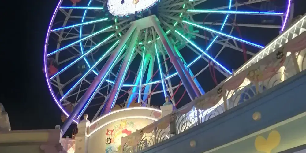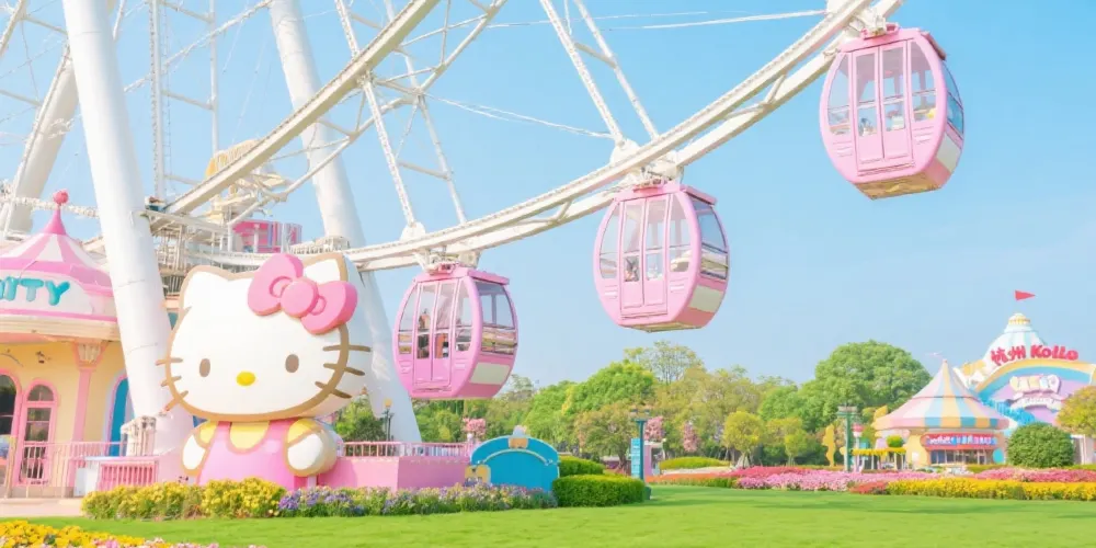 進入杭州HelloKitty樂園,一眼就能看到的繽紛摩天輪是目前世界第三台、亞洲一台的滑道摩天輪。擁有8個固定座艙,8個活動座艙,遊客在座艙內不僅能享受悠閑美妙的摩天輪時光,還能在42米的高空一覽整個杭州HelloKitty樂園歡樂的景象。