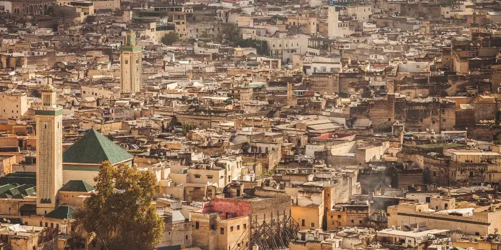至今非斯麥地那還保留著比較完整的城牆,老城規模非常大,是摩洛哥最大的麥地那。老城中有近1萬條小巷,狹窄曲折,像是迷宮一般,所以這裡號稱世界唯一沒有汽車的城市,毛驢是最重要的交通運輸工具。