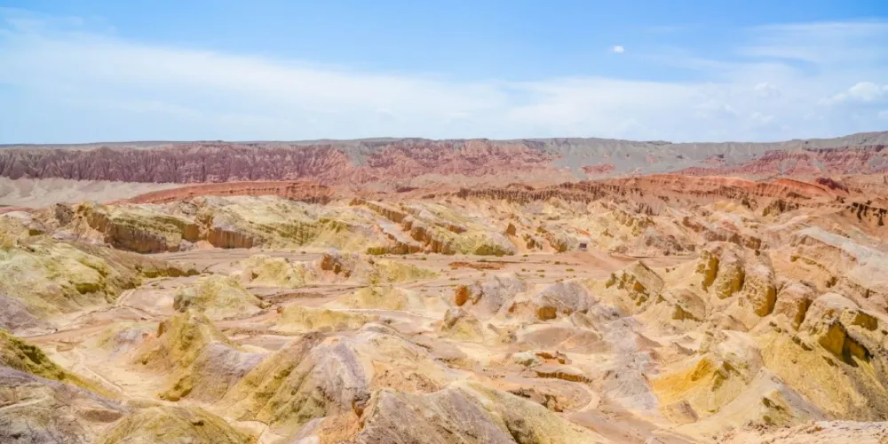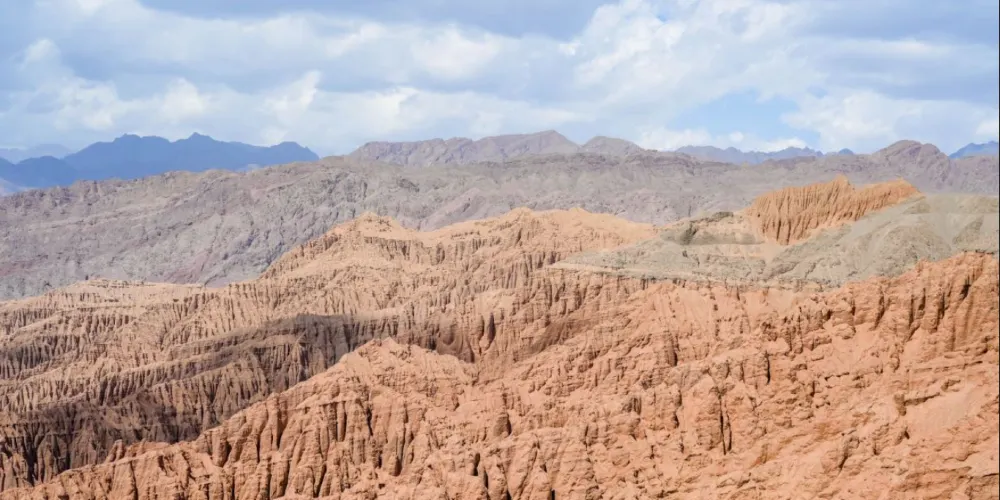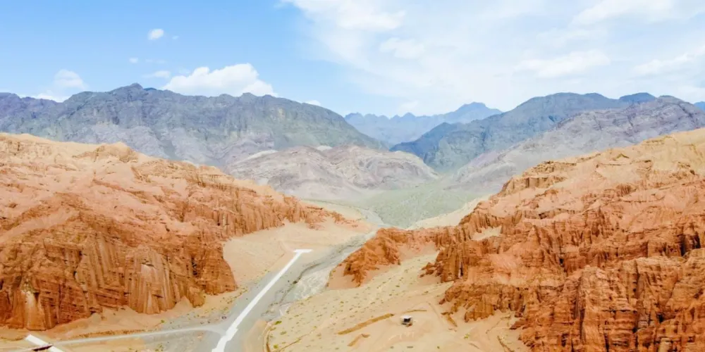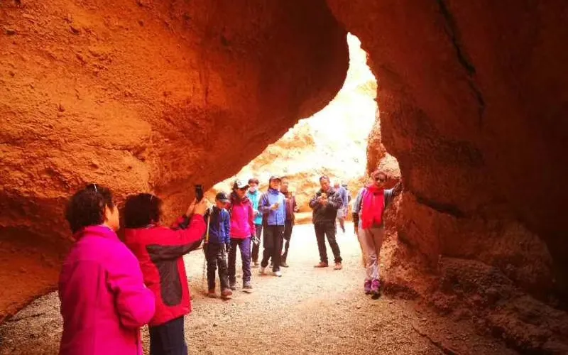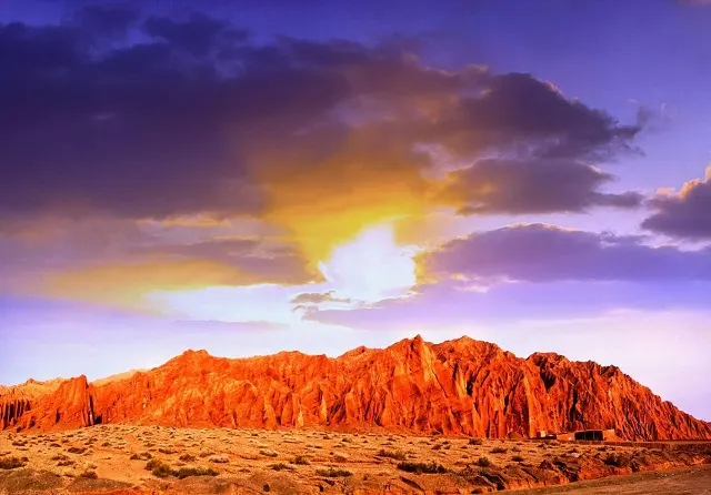 火雲穀景區位於吐魯番市北側20公裡,天山南側,距離吐魯番火車北站及機場約15公裡,景區內赤壁丹崖,刀鋒林立,千溝萬壑,造型奇特,大自然的鬼斧神工,造就了火雲穀恢弘壯闊的丹霞世界,也是火洲吐魯番既具代表性又相對獨特的景觀。