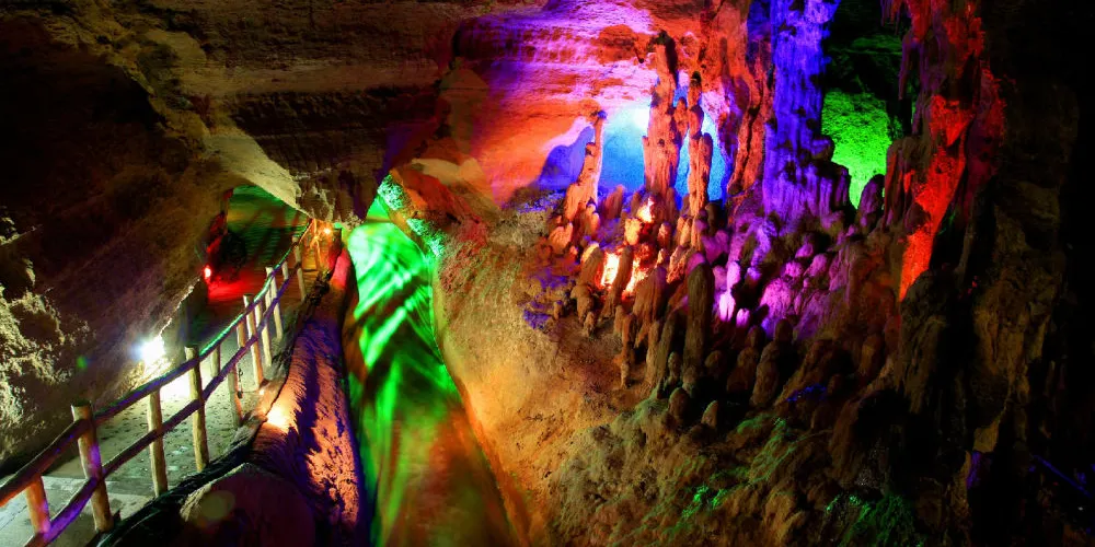 螢火蟲水洞是一個特大型地下暗湖岩溶洞穴,是著名的地下螢火蟲水洞神秘世界。擁有亞洲神秘的螢火蟲奇觀、形態不一的鐘乳石、江北大型的生態蝴蝶谷等奇特景觀。另外還有崖瀑漂流、滑道車、夢幻昆蟲園等多處景點,是集休閒觀光、科普教育、科考探險等多功能於一體的大型綜合性生態旅遊區。