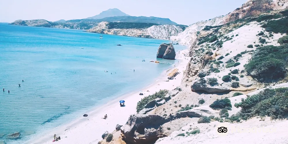 則評價莎拉基尼可海灘是米洛斯島上一個非常熱門的海灘,以其奇特的地貌特徵而聞名。海灘大部分被連綿起伏、坑坑窪窪的白色巖石層覆蓋,形似月球表面。白色的巖石和孔雀藍色的清澈海水一同構成了這裏獨特的風光。巖石堆積較高的地方構成了一個個風景很好的懸崖,勇士們可以較低的懸崖處試試跳水,別有一番樂趣。