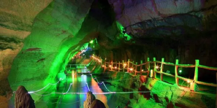 中國地下河漂流第一洞被譽為中國長的溶洞漂流項目已經得到上海大世界吉尼斯記錄總部的認證,其充分體現了溶洞內的幽深莫測,起伏高下,波激浪湧,抑揚頓挫的特點和恐龍模型的陣陣吼聲,將地下河漂流的原生野始,驚險刺激演繹的淋漓盡致。