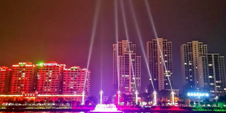 亞洲第一高噴泉位於河源大橋與珠河大橋之間的新豐江中心,每到夜晚時分,噴泉水型多樣,融聲、光、水、色於一體,十分壯觀。在歡快愉悅的樂曲中,噴泉水柱在燈光的映襯下顯得絢麗多彩,前來觀看噴泉的人們在噴泉下歡呼,被這美麗的景觀折服。