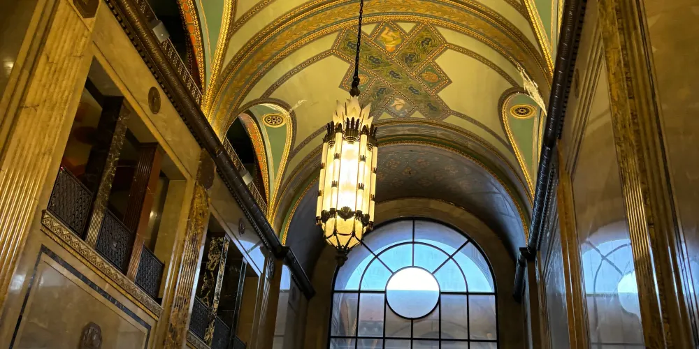 漁人大廈(Fisher Building)建於1928年,是由著名設計師Albert Kahn設計的一座藝術建築。這座建築十分奢華,似乎與底特律這座城市有些格格不入,但卻起到了劃分底特律新城和郊區的作用。而fisher則是建造這一大樓兄弟的姓氏,僅僅音譯成漁人而已。