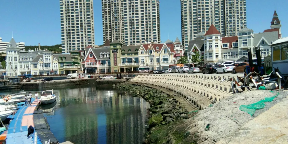 漁人碼頭位於老虎灘海洋公園的虎灘漁港,港灣內停著各類游船,也有沙灘可以玩耍休憩。岸邊分佈著各類歐式建築,其中包含多種特色的餐廳、咖啡館。整個碼頭安靜、閒適,在這裡你可以享受到陽光沙灘,感受漁家風情,或者在特色街區擁有一個美好的下午。