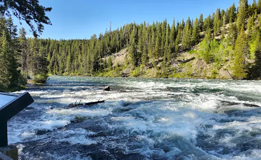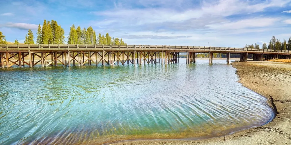 釣魚橋橫跨黃石河,是黃石湖的出口。每年6、7月在通往釣魚橋的路上,可以觀看野生鱒魚在Le Hardys Rapids中跳躍,逆流產卵。在釣魚橋有一個遊客中心,以鳥類的展覽為主。注意,釣魚橋並不能釣魚,只是一個觀魚的好地方。