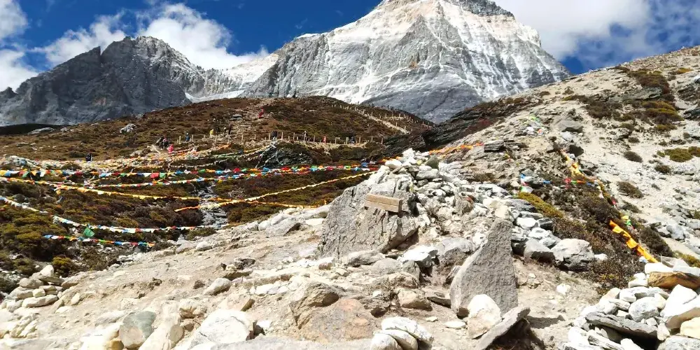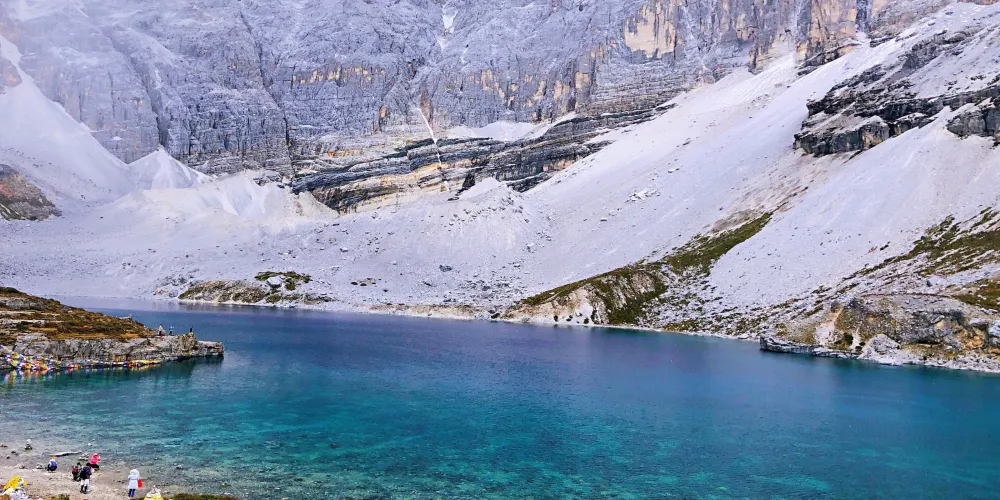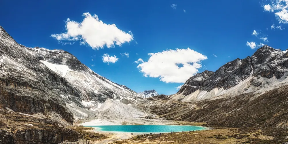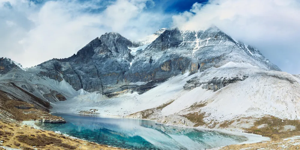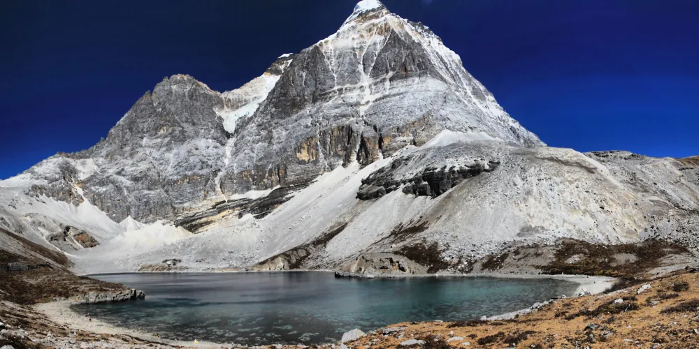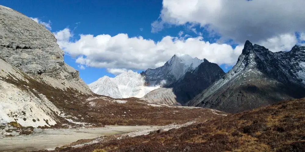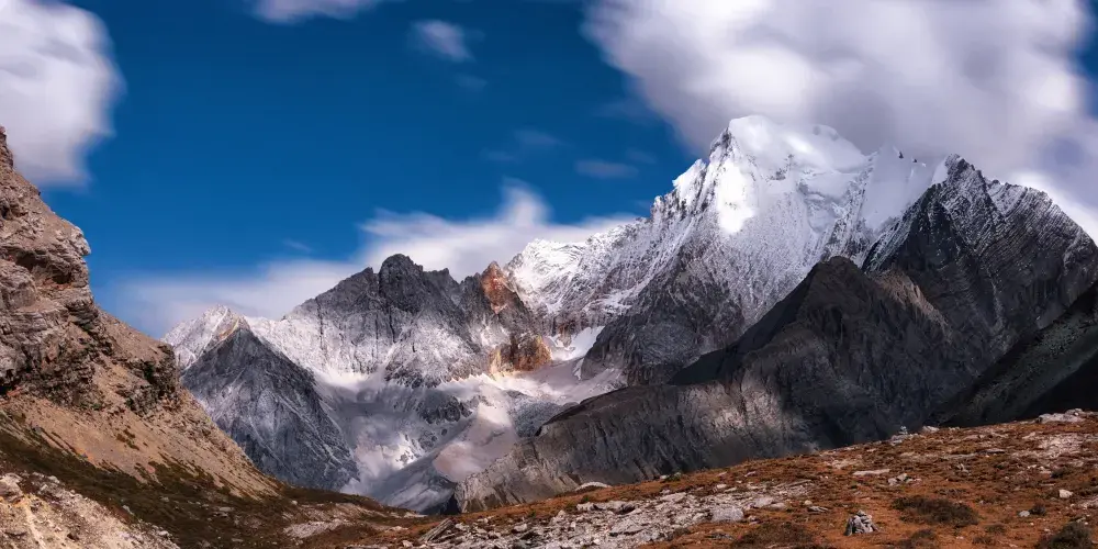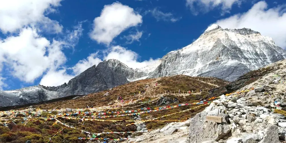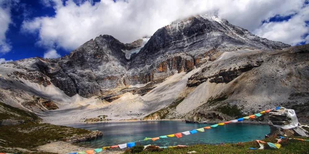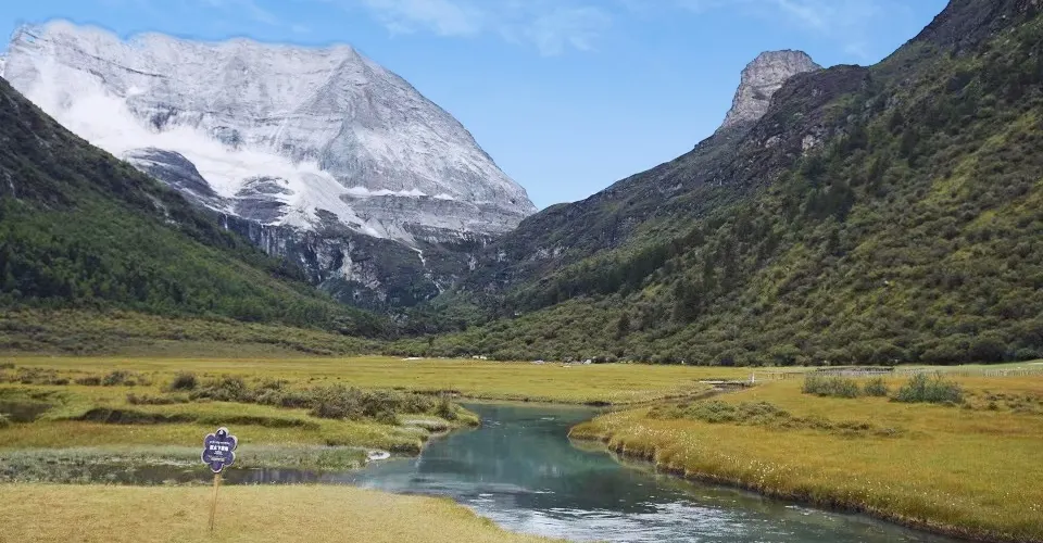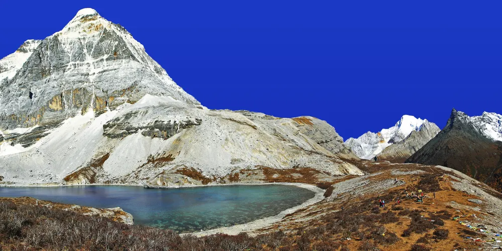 稻城亞丁的三神山由仙乃日、央邁勇、夏諾多吉三座雪峯組成,分別代表觀音菩薩、文殊菩薩、金剛手菩薩。三座山峯終年白雪皚皚,遙相呼應,直逼雲天,懾人心魄據佛教的典籍聖地咱日祕相記載,世界佛教二十四神山,它排名十一,屬相是雞屬眾生供奉朝神積德之聖地據説轉山一次等於念一億嘛尼的功德,藏曆雞年朝拜,功德倍增。仙乃日(藏語觀世音菩薩)、央邁勇(藏語文殊菩薩)、夏諾多吉(藏語金剛手菩薩)三座雪山相距不遠,各自拔地而起,呈三角鼎立,藏傳佛教稱為“日松貢布”,意為三怙主福山。北峯仙乃日海拔6032米,南峯央邁勇海拔5958米,東峯夏朗多吉海拔5958米,三座雪山峯峯形各異,但都潔白無瑕,一塵不染。山腰茫茫林海,飛泉瀑布於其間,山腳寬谷曲流,鑲嵌着明鏡般的湖泊。雪峯、冰川、森林、溪流、瀑布、草甸、湖泊有機的組合,野生動物出沒於其中,託出了一方靜謐的凈土。
