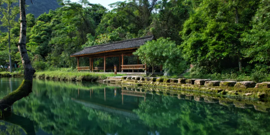 貴州與廣西交界的荔波縣茂蘭地區,分佈着面積達二百平方公里集中連片的中亞熱帶喀斯特原生性較強的殘存森林,這種由森林和喀斯特地貌組合形成的生態系統在全世界的同緯度地區十分少有,更以原始性強、集中連片為特色。青龍澗是茂蘭深處具有原始魅力的山水祕境,它集山、水、洞、林、瀑、石為一體,濃縮了喀斯特地質地貌的各種生態奇觀,是一席原生態的山水盛宴。