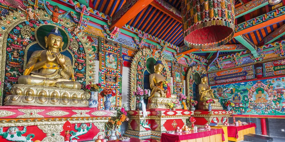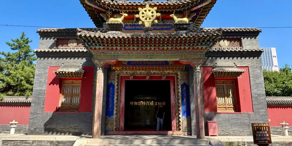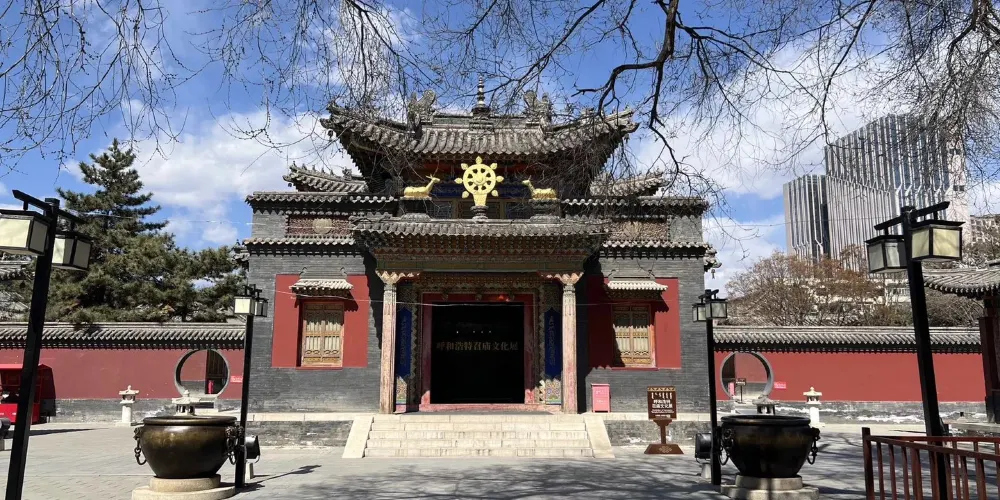 呼和浩特市中心的大召寺,是明代蒙古土默特部落的首領阿拉坦汗,在明萬曆八年(1580年)主持修建的。寺廟屬於藏傳佛教格魯派。銀佛、龍雕、壁畫,是遊玩大召寺時一定要去看的。在寺廟大殿中,可以看到一座由3萬兩白銀鑄成的“釋迦牟尼像”。在銀佛座前,有兩條金色的龍,分別雕刻在兩根柱子上,這就是龍雕。而那些經堂和佛殿牆壁上的壁畫,因為使用了礦物原料,顏色至今不退。壁畫的內容來自佛教中的經典故事。