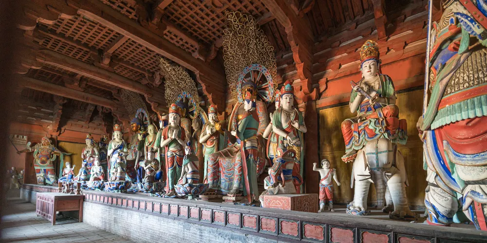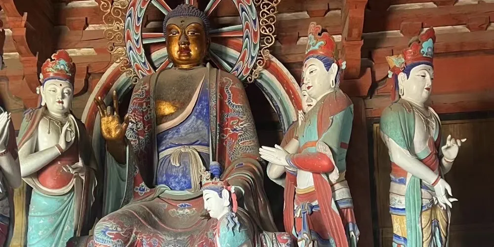 佛光寺位於山西五台山,重建於唐宣宗大中十年(856年),在全國現存的木結構建築中位居第二,屬全國重點文物保護單位。佛光寺殿堂高大,佈局主次分明,大殿內的佛壇上有唐代彩塑35尊,圍繞著佛壇的殿內牆壁前,排列著五百羅漢。佛光寺的唐代建築、唐代雕塑、唐代壁畫、唐代題記,歷史和藝術價值都很高,被人們稱為“四絕”。