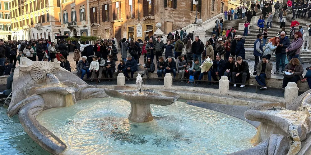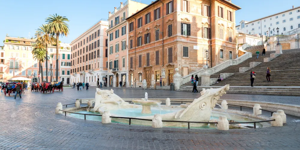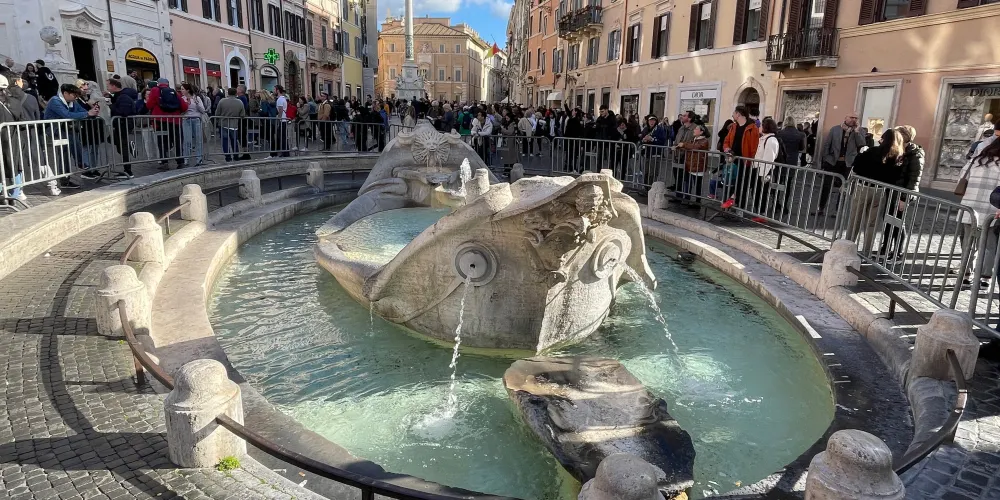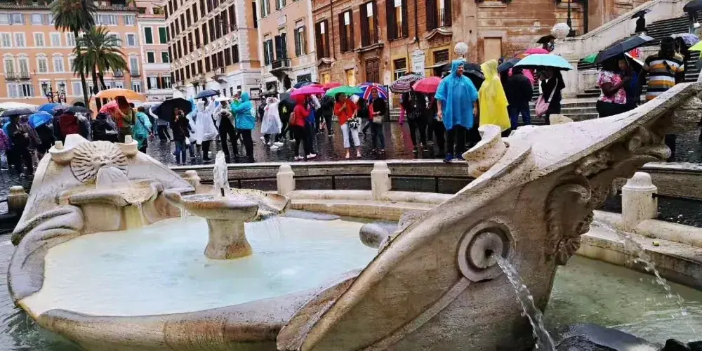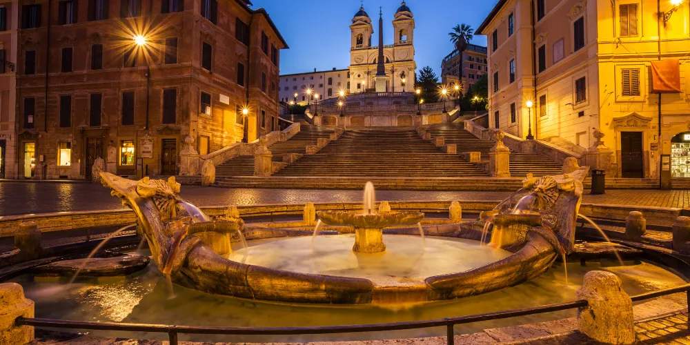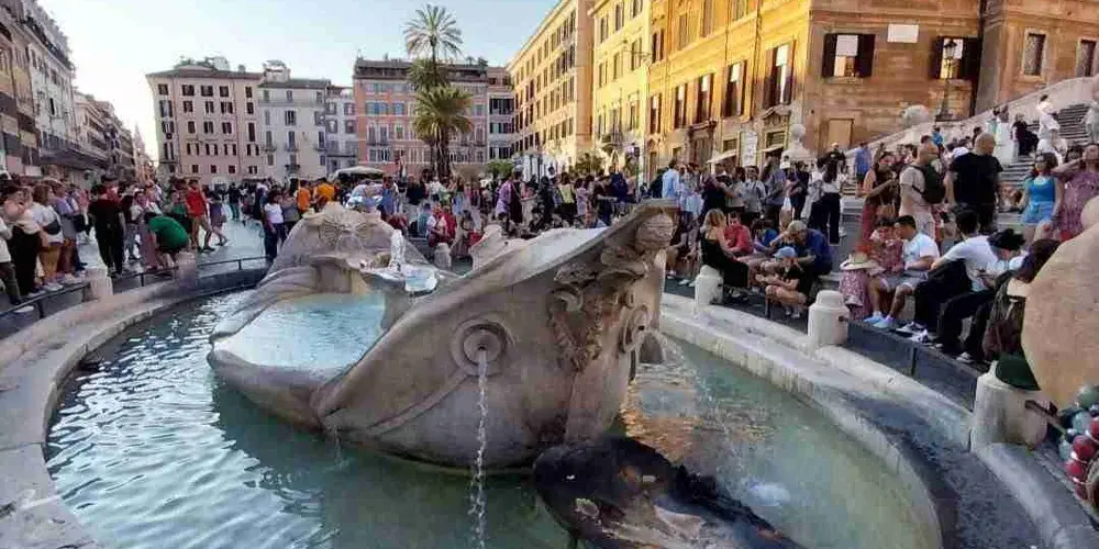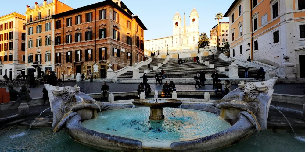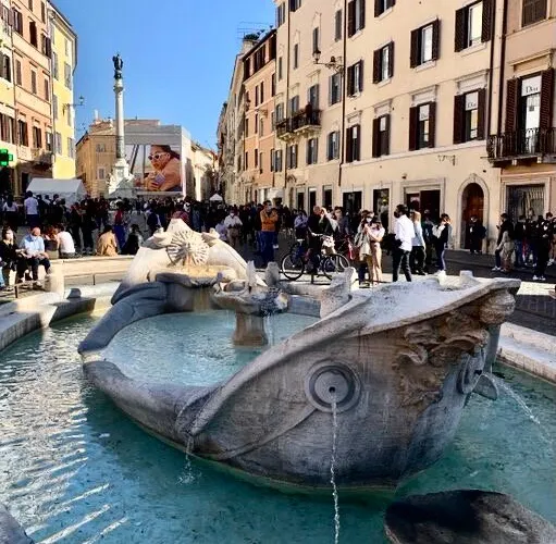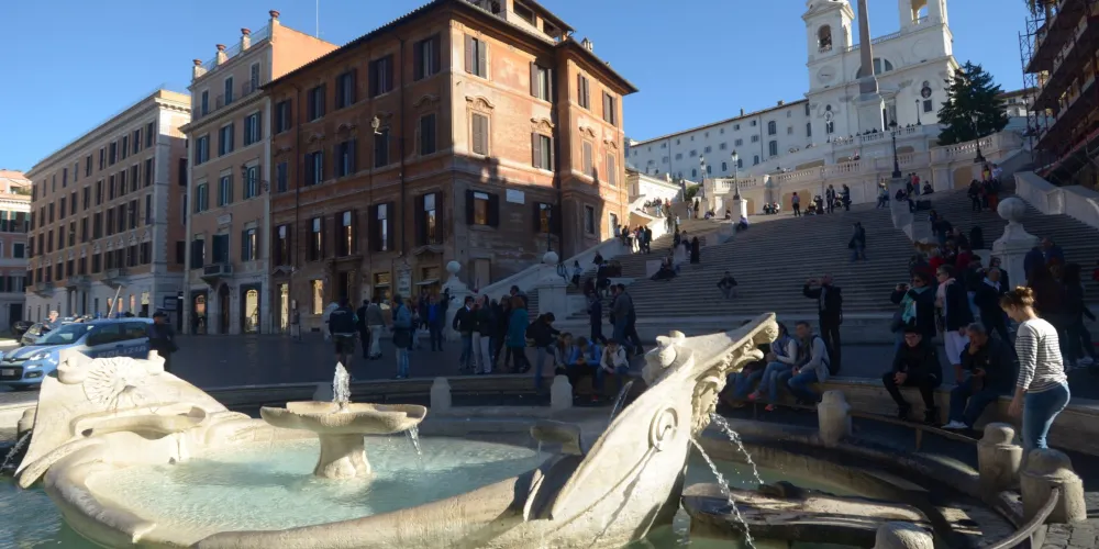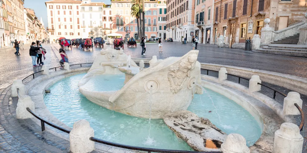 破船噴泉位於西班牙廣場的正中央,是意大利最著名、最古老的一座噴泉,也是羅馬水流量最小的噴泉之一。相傳它是為紀念1598年羅馬大水災而建造的。破船噴泉有一半浸在水裡,與其他噴泉相比十分别致。