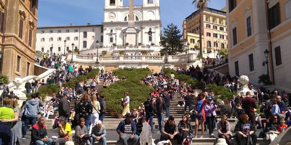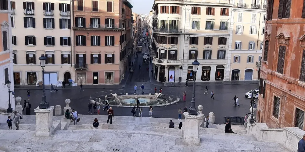 則評價西班牙廣場因電影《羅馬假日》的經典場景中而名聲大噪,赫本那亮麗的倩影已經與西班牙廣場合為一體。整個西班牙廣場面積不大,人們主要集中在西班牙台階附近。沿著台階一路往上走就能到達天主聖三教堂,從教堂的一對鍾塔可以看出它是屬於哥特式的建築,站在教堂前的平台上可以俯瞰整個西班牙廣場。另外,台階下方的巴洛克式噴泉——破船噴泉也十分有名。