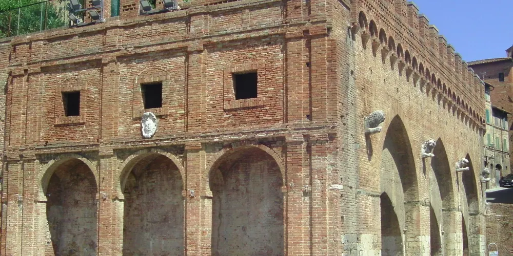 錫耶納的城市建築物密集並且具有高度的建築統一性。淡紅色調子的磚塊和與周圍暗藍灰色的丘陵相協調。除了羅馬風格和文藝複興風格的因素以外,意大利哥特式風格占重要地位,它受到了十字軍東征時期東方的影響並且以狹窄的拱廊的形式表現出來。大部分建於13世紀的數量眾多的哥特式噴泉增添了錫耶納的華麗與協調。