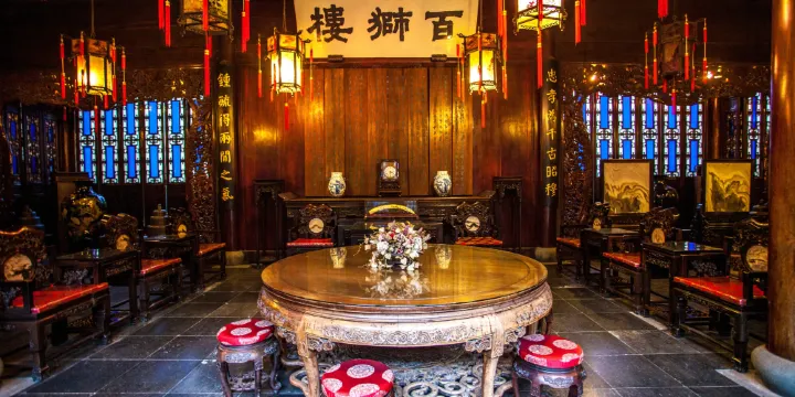 胡雪巖故居位於杭州市西湖風景區元寶街18號,建於1872年,古宅為典型明清院落風格,宅第分為中軸部分和東西兩側院落。中軸區域由轎廳、百獅樓等組成,用於日常待客。東側院落由和樂堂、清雅堂、楠木廳等廳堂組成,是主人家生活起居之所;西側院落是胡雪巖常去的花園—芝園。