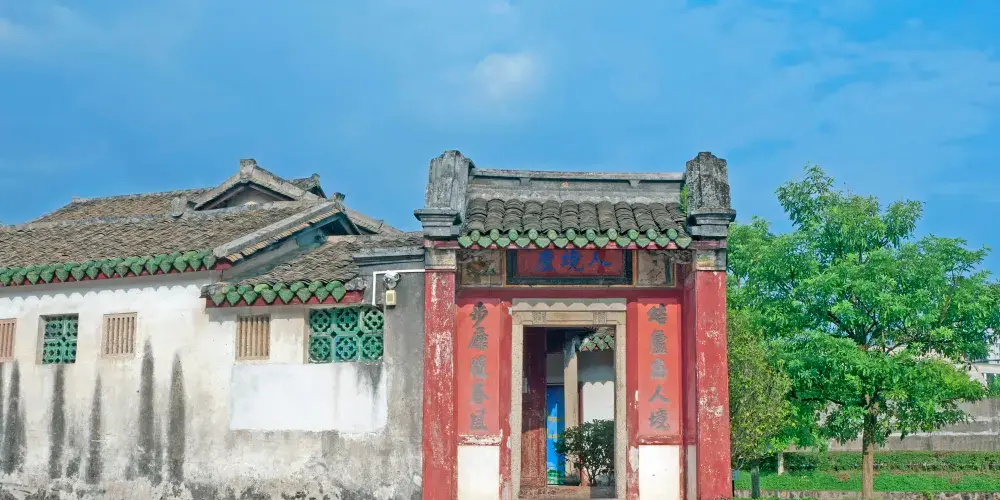 清末愛國詩人黃遵憲的故居名為“人境廬”,取意陶淵明詩句“結廬在人境,而無車馬喧”意。坐落在梅州市東3公裡處的周溪畔,建於1884年春。門楣上的“人境廬”三個字,為日本書法家大域成瀨溫所書。