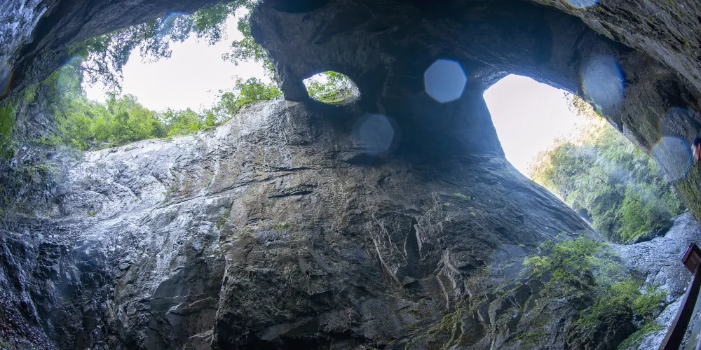 四洞峽是一處極為少見的穿洞羣落景觀,也是罕見的地質構造景觀。據考證,這些洞大約在一億四千萬年前開始形成,十分古老。四洞峽每個洞各有特色,發育畸形,集山、水、洞、溪、泉、瀑以及原始的生態於一體,處處體現出和諧、優美和神奇。