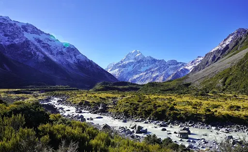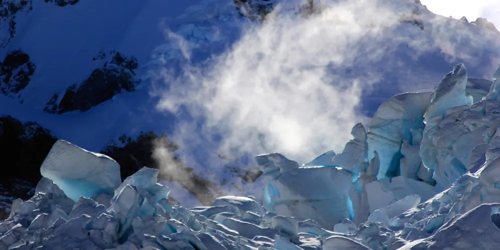對許多遊客來說,快速移動的福克斯和弗朗茲約瑟夫兩大冰川是其前來探訪的主要原因。在冰川腳下,都可以聽到吱吱作響碰撞的聲音,這是古老的冰川在向著曆經時光磨礪的山穀緩緩行進。