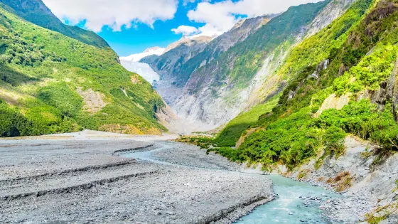 儘管世界上的許多冰川正在融化,但福克斯冰川卻因為接近海平面並未受到影響。當地的海拔高度較低,氣候溫暖濕潤,為遊覽提供了便利的環境,使之成為世界上受青睞的冰川景觀。遊客可以輕鬆地步行至冰川腳下,穿過兩側峭壁林立的河谷,欣賞經過數千年的消融和凍結形成的冰川美景。當您靠近冰川腳下的時候,其巍峨壯觀的美景一定會讓你震撼不已。