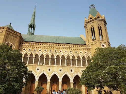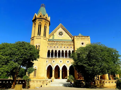 FrereHall是少數從英國殖民時代保留下來的古建築之一,主體建築大部分使用了卡拉奇本地出產的石灰巖,外牆呈現淡黃色,與本地的伊斯蘭建築風格有明顯的差異,外面是開放的草坪,週日的時候會有舊書集市,可以淘到不少已經不再印刷出版的書籍。