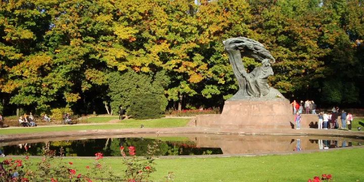 Fryderyk Chopin Monument是位於波蘭華沙皇家浴場公園內的一座雕像,紀念波蘭作曲家和鋼琴家弗雷德里克·蕭邦。雕像由藝術家 Wacław Szymanowski 於 1926 年創作,形象呈現蕭邦坐在一塊岩石上,深情地低頭沉思,表達了他與音樂的深厚關係。雕像的設計旨在體現蕭邦的藝術成就和他對波蘭音樂文化的貢獻。周圍的環境使得這座雕像成為一個放鬆和反思的理想地點。雕像位於公園的綠地上,旁邊有一片寧靜的湖泊和樹木,遊客可以在這裡散步,享受大自然的寧靜氛圍。每年夏天,公園內還會舉辦露天的蕭邦鋼琴音樂會,進一步增強了這個紀念地的文化意義。 Fryderyk Chopin Monument是華沙的文化地標之一,吸引了來自世界各地的遊客前來參觀。這裡不僅是紀念蕭邦的地方,也是一個結合音樂、藝術和自然美景的文化空間,適合那些希望了解蕭邦生活與創作背景的遊客。