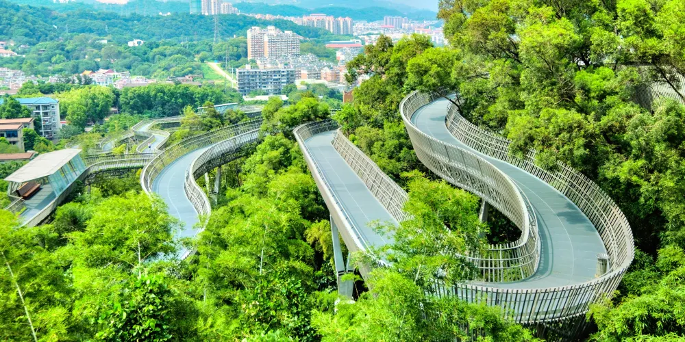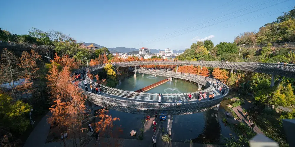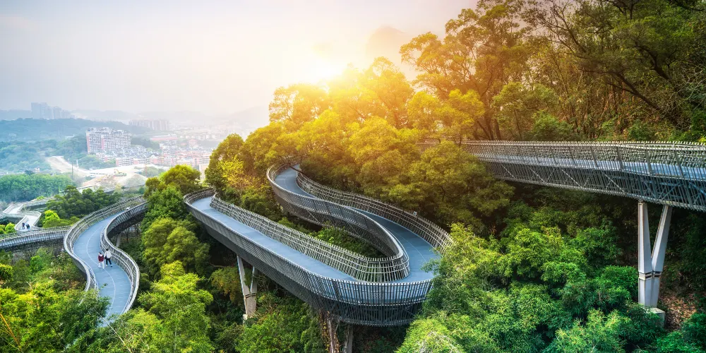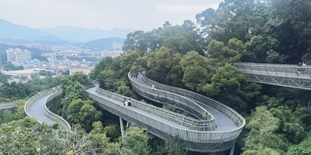 福道即為福州城市森林步道,它採用鋼架鏤空設計,主軸線長6.3公里,環線總長約十九公里,福道東北接左海公園,西南連閩江廊線,中間沿金牛山山脊線貫穿左海公園、梅峯山地公園、國光公園以及金牛山公園。