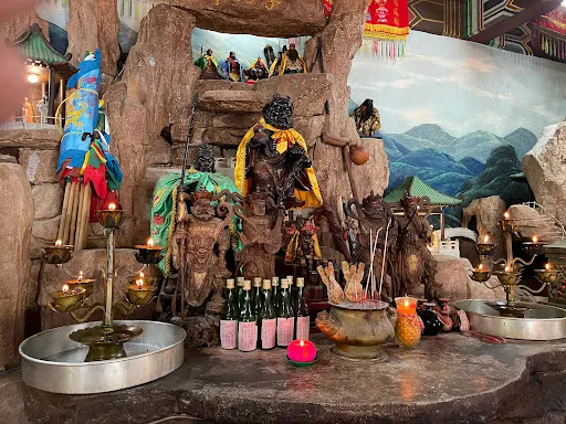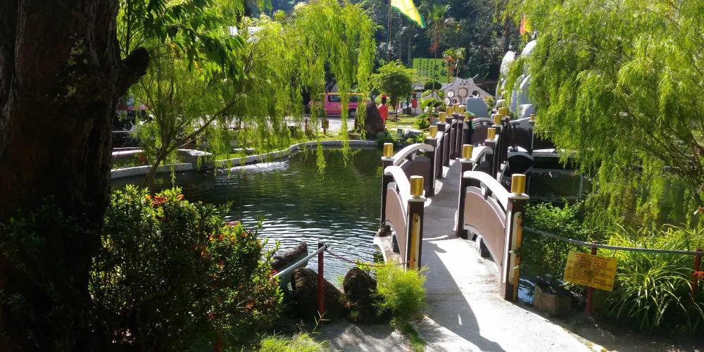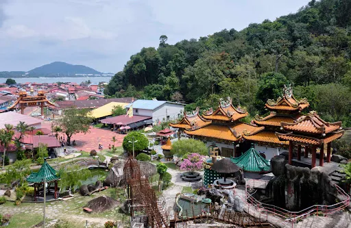 擁有70多年歷史的福臨宮,一開始只是一間小小的屋子,據說求籤十分靈驗,於是就有許多來自新加坡、文萊等地的善男信女前來問事求籤,後來大家紛紛出錢出力擴建福臨宮,才會有福臨宮今天的樣子——嶄新的建築,簡單的雕樑畫棟,極其鮮亮的色彩。福臨宮是很多遊客必到的地方,因為這裡是當地華人因思鄉情切集資興建的信仰中心。有機會去的話,記得一定要去看看那面被島民奉為寶物的可以長出牛毛的牛皮大鼓,光滑的鼓皮在被釘上鼓身後,鼓皮的毛髮竟持續成長。聽說此鼓非常具有靈性,許多人拔了鼓上的毛,放在錢包裡就會財源滾滾,蔚為奇觀,觀光客便紛紛慕名前來拔取鼓毛求取好運。1991年,前首相拿督馬哈迪醫生到訪福臨宮時,還建議將鼓框起來,不然鼓上的毛遲早會被拔光!對了,別忘了去池塘看看有名的一米多長的龍王魚。