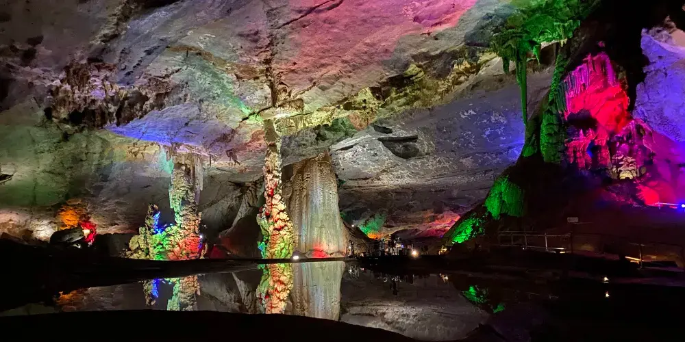 富春桃源位於胥口鎮,擁有優美的溶洞和湖泊景觀,是周末休閒的不錯選擇。九霄碧雲洞、天成野櫧林、巖嶺湖是景區的主要看點。九霄碧雲洞洞口可以俯瞰下面的村莊田園,經過紅燈籠隧道,就來到了溶洞主景區,這裡鐘乳石的造型千奇百怪,遊人可在此盡情想像。