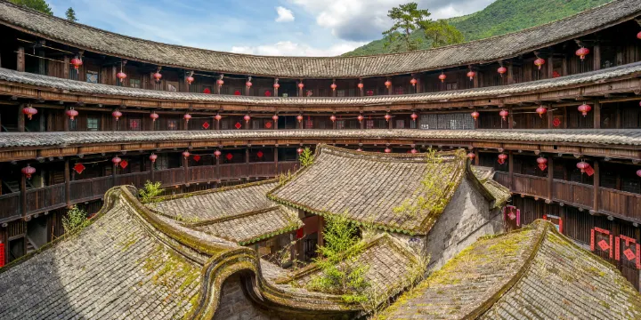 初溪土樓古村落景區繫世界文化遺產地,是福建土樓中氣勢磅礴的土樓羣,擁有5座圓樓和31座方樓。景區不僅規模宏大,還具備了“集中、美麗、古老、特殊、知名”的特點,是文化休閑體驗的旅遊目的地。全國重點文物保護單位“集慶樓”是福建土樓中歷史悠久、結構特殊的圓土樓。全樓建築時沒用一枚鐵釘,72道樓梯與厚度近2米的生土牆共同經歷了600多年的風霜雪雨。地點:福建省龍巖市永定區下洋鎮初溪村。