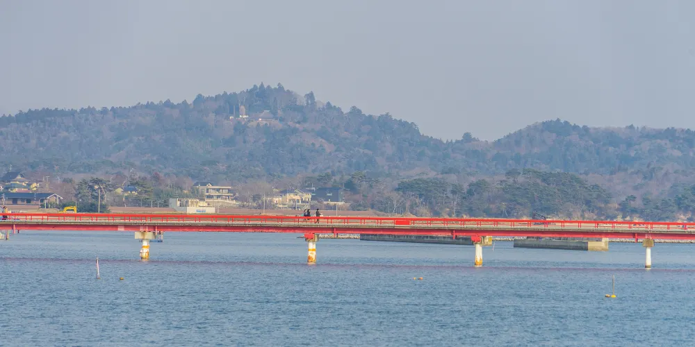 橫跨福浦島長約252m的塗紅橋樑,通稱邂逅橋。傳説從此橋走過去則能與邂逅良緣。過了此橋後前方有縣立自然公園“福浦島”。島內有弁天堂、見晴台、亭子等,您可邊散步邊欣賞四季分明的花草、眺望松島灣的美景。