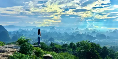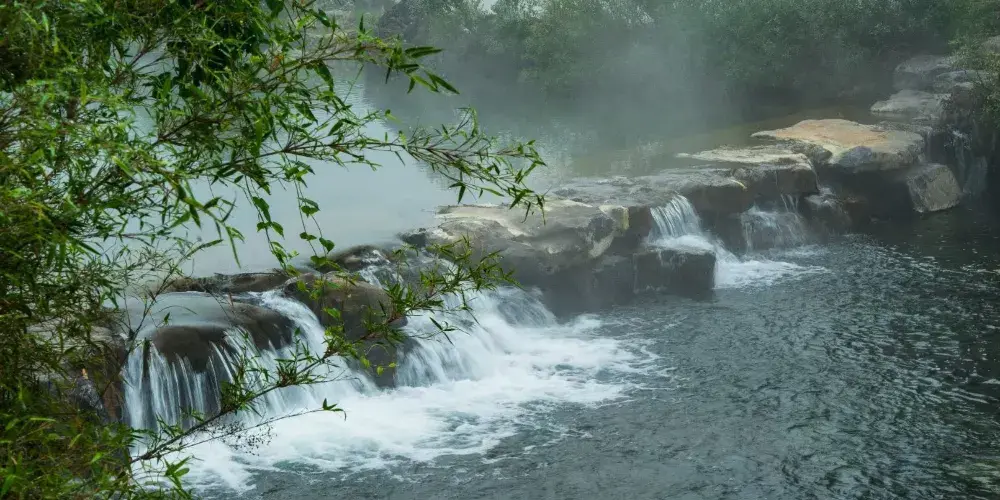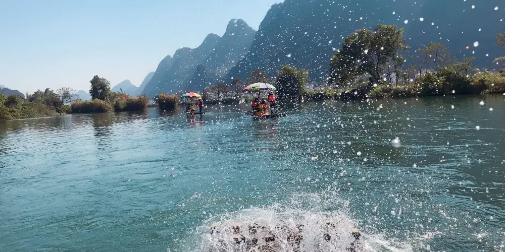 清波蕩漾的燕子湖鑲嵌在大片的綠野平疇之中,宛如少女的明眸脈脈含情。湖岸邊垂柳依依,輕拂水面。一架巨大的水轉筒車,吱吱呀呀地搖著歲月,也吟唱著鄉村古老的歌謠。放眼望去,遠方群山聳翠,村樹含煙,阡陌縱橫,屋宇錯落,宛若陶淵明筆下"芳草鮮美,落英繽紛","有良田美池桑竹之屬"的桃源畫境。乘坐小船遊覽燕子湖無疑是一種享受。