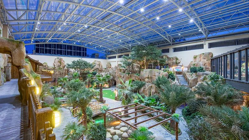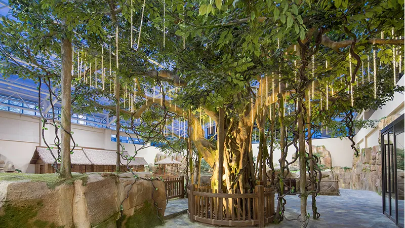 “釋放天性,樂享四季”——莫幹山開元森泊度假樂園以“大自然”為原點,創新衍生出“精品度假”與“奇趣遊樂”兩大核心板塊,是開元酒店集團傾力打造的超大型全天候一站式休閑度假樂園。莫幹山開元森泊度假樂園位於湖州市德清縣下渚湖街道寶塔山村,距高鐵站15分鐘車程,距離杭州市中心僅40公里。項目佔地1800畝、擁有1300間客房。重金打造的室內水樂園是一座擺脱四季晴雨束縛的大型恆温水樂園,全年恆温30度。芙洛拉花園是半開放的小型生態花園,繁茂的熱帶植被使這列常年保持着鳥語花香。