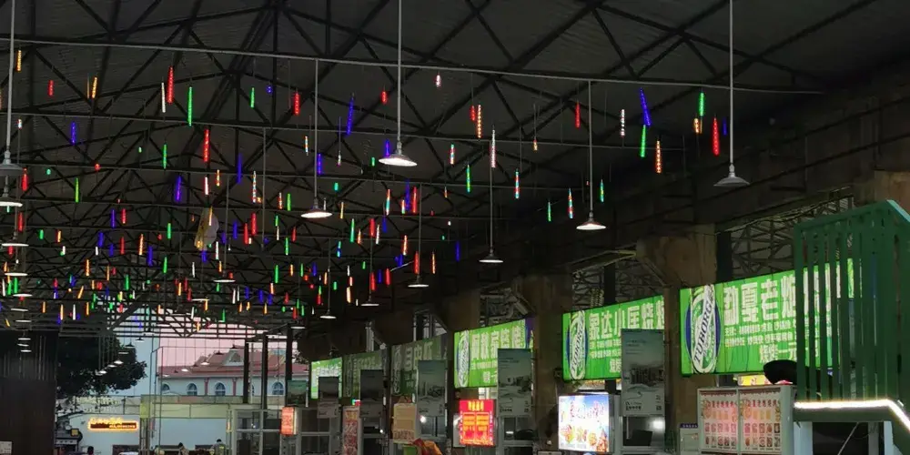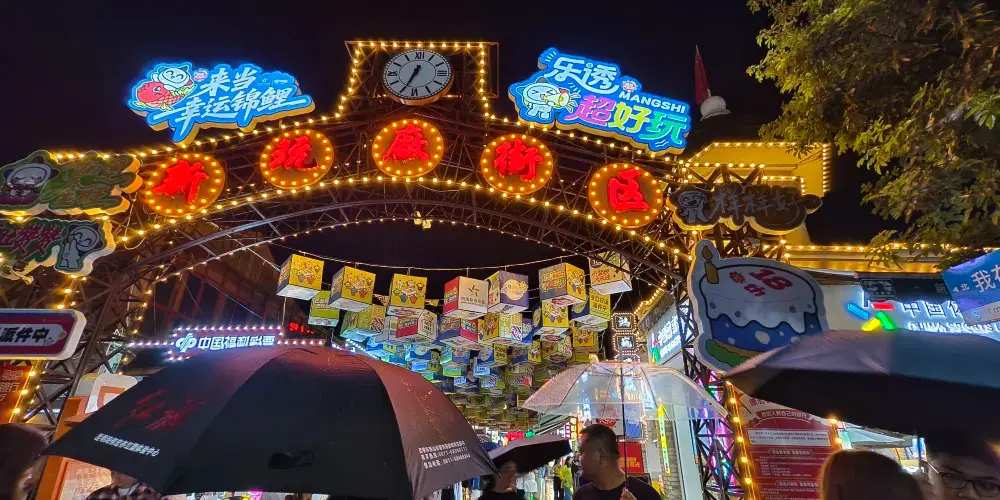 芒市新玩廠是雲南省德宏州芒市的一處由舊工業廠房改造而成的文化旅遊創意園區,這座承載工業記憶的老廠區轉型為集美食、文創、娛樂於一體的“夜遊寶藏地”,成為省級夜間文化和旅遊消費集聚區。新玩廠佔地3.7萬平方米,包含復古街區、星空夜市、美食廣場等主題區域,匯聚300餘家商鋪,提供傣味燒烤、泡魯達等特色小吃,以及民族手工藝品和潮流文創產品。園區也引進中國體育彩券展示體驗中心等創新業態,吸引年輕遊客。作為芒市工業遺產活化典範,新玩廠既保留了老廠房的懷舊風貌,又透過創業扶持激發青年創新活力,成功打造了歷史與現代交融的城市新地標。