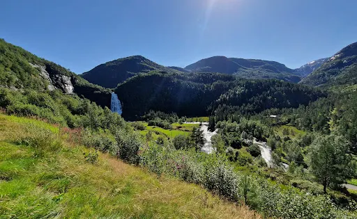 Steindalsfossen瀑布位於諾海姆桑德(Norheimsund),他是挪威較出名的瀑布之一,非常壯觀,去看的時候可以趁着豐水季,5、6月份的時候較為壯觀。這座瀑布的亮點是可以從瀑布後面走過。