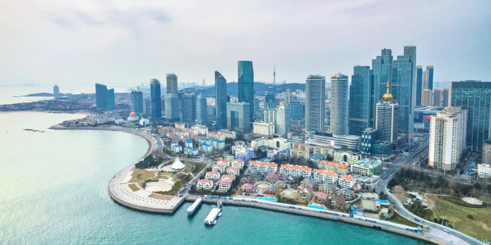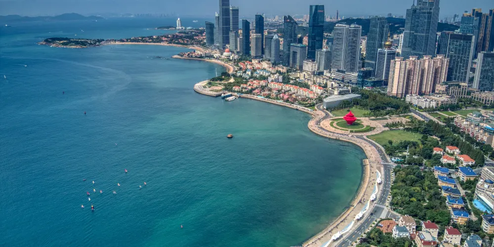 浮山灣位於青島市南區、東海西路旁。這片近似橢圓形的迷人海灣,東有青島奧帆中心,西與有名的八大關相接,北面是青島的五四廣場,南面則是浩瀚的東海。整個海岸線綿延7公里,自然的海濱風光和現代化的城市建築相媲美,堪稱青島市的一顆明珠。