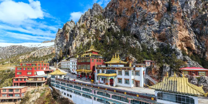 尕爾寺是一座直貢噶舉派的寺院,坐落於一座海拔3700多米的高山上,分為上寺和下寺。山的北面全是奇峯怪崖、寒風料峭,但南邊卻是略有坡度、温暖向陽。尕爾寺的數百間建築,就不規則的分佈在山南邊的這個大山坡上,從下至上,直到山頂。尕爾寺附近集中了高山草場、古老的曬鹽池、原始森林和林間溪流,較為難得的是這一段有青藏高原少見的峽谷森林景觀。由於寺院裏的僧人們一直奉行佛教所提倡的大慈大悲、生命平等的思想,多年來僧人們一直與山裡的動物和睦相處,從不殺戮。這裏生存着獼猴、麋鹿、狐狸、狼、雪豹等多種高等動物和雪雞、鷹、禿鷲等近百種鳥類。時間一長,這裏的僧人們和山裡的動物成了朋友,一些獼猴、巖羊等動物,也經常出入寺院,與僧人們親密接觸。