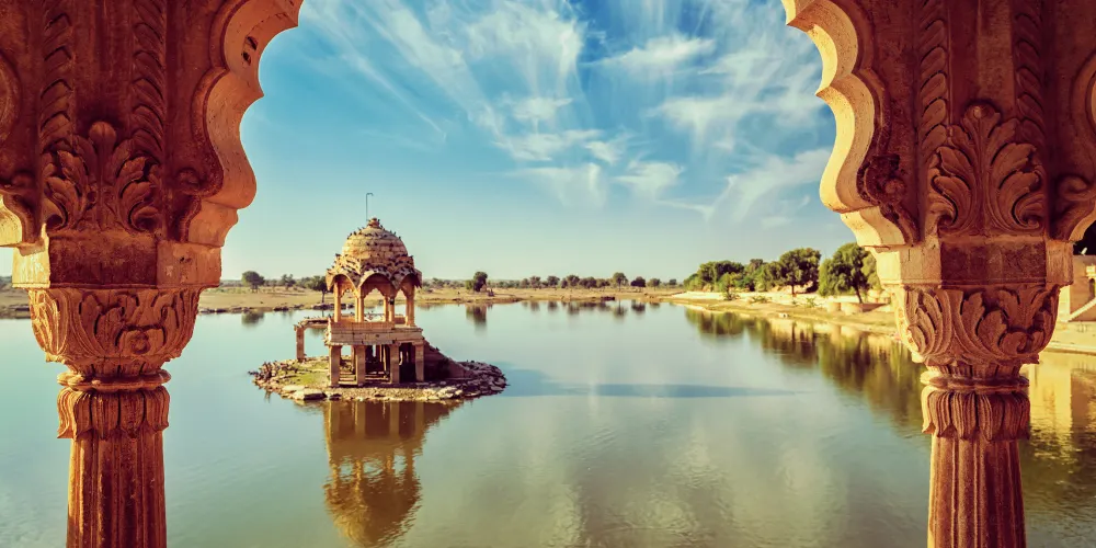 湖邊上有一排黃色砂岩建築的亭閣和廟宇,其中有一座漂亮的拱門(Teelon Ki Pol),據說是由一位虔誠的印度教徒出資所修建的。當地的王公認為穿行這座門有失身份,責令拆掉這座拱門。這位教徒聽從了祭司的建議,趁王公外出期間,在拱門上修建了一座印度廟,這樣王公就無法拆除這座拱門了。此後,賈沙梅爾的王公拒絕行經這座拱門,要前來加迪薩爾湖都得繞道。
