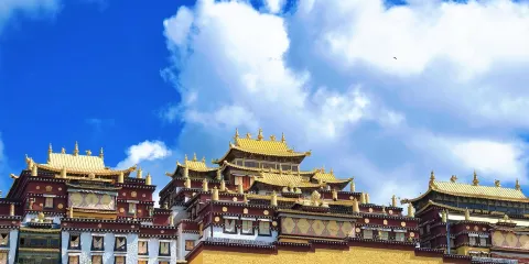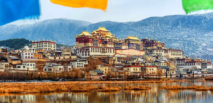 松贊林寺又稱歸化寺,位於香格里拉以北5公里的佛屏山下,是公元1679年五世達賴和清康熙皇帝敕建""十三林""之一。它不僅是雲南最 大的藏傳佛教寺廟羣落,還是滇西北一帶的黃教中心,被譽為""小布達拉宮""。該寺依山而建,外形猶如一座古堡,集藏族造型藝術之大成,有""藏族藝術博物館""之稱。每年農曆十一月二十九日,藏民在此舉行以“跳神”(面具舞)為主的格冬節,氣氛神祕而熱烈。