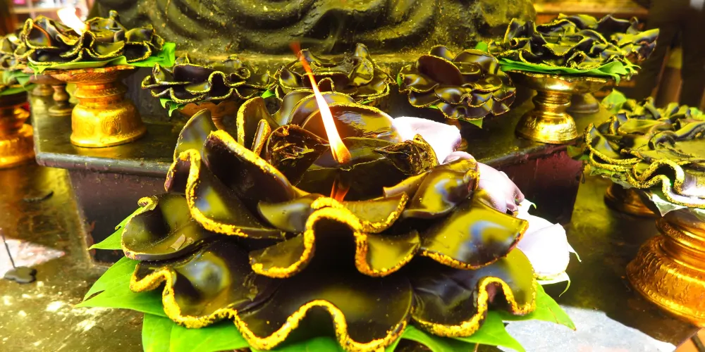 四面佛位于伊拉旺神祠中,前后左右有四副面孔,分别代表慈、悲、喜、舍四种梵心。神像摆放在工艺精细的花岗岩神龛内,正襟危坐,全身金碧辉煌,四面都是同一面孔、同一姿态。由于它的灵验,为众人称道,因此这里的香火非常旺盛。