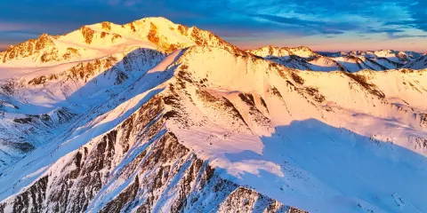 崗什卡雪峯位於青海省,海拔5254.5米,是祁連山脈東段的主要高峯,峯頂常年白雪皚皚,銀光熠熠,宛如一條玉龍。平時遠眺,一片潔白,每當夕陽西下,晚霞輝映,山頂五彩繽紛,暮靄升騰,被稱為“龍峯夕照”,是門源八大景之一。