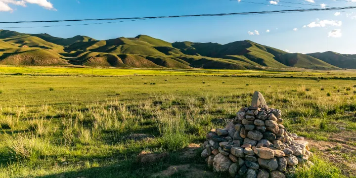 甘加草原位於夏河縣城西北20公里處,它不僅同桑科草原一樣美麗,更多了一份靜謐。草原被羣山環繞,是典型的高原草地,理想的牧場。夏季,整個草原碧綠如茵,好似一塊綠色大地毯,鮮花盛開,繁花似錦。
